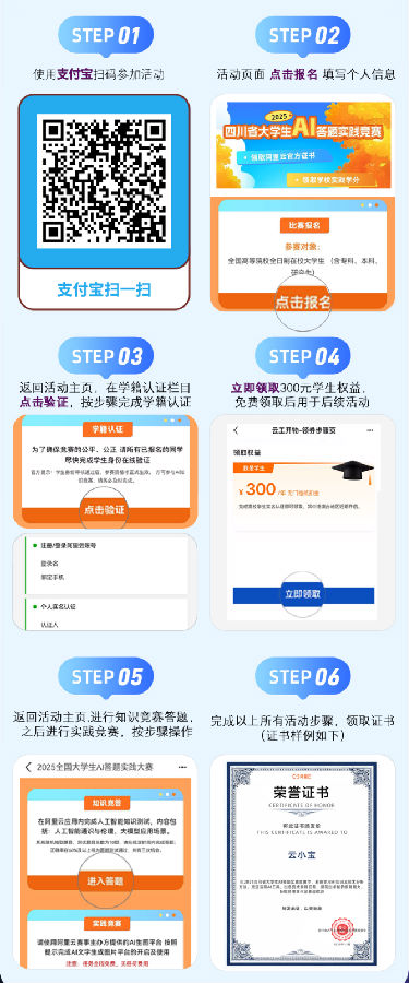 本次活动仅面向在校大学生开展,参与学生需通过阿里云官方平台报名及认证学生身份,完成相关实践流程后进入答题测试环节。
